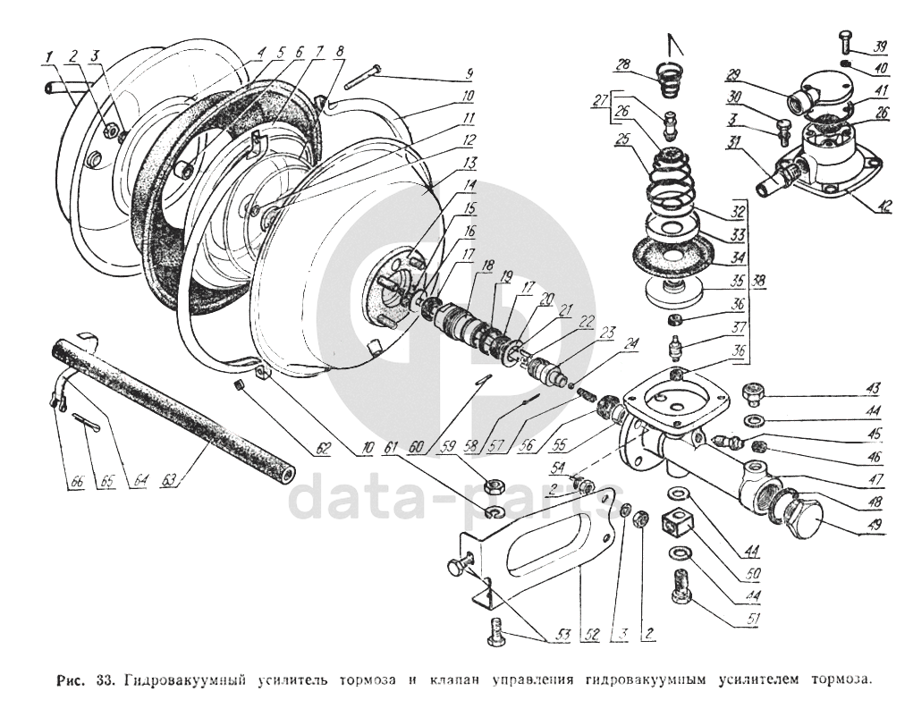 Гидровакуумный усилитель тормоза и клапан управления гидровакуумным усилителем тормоза ГАЗ-52-02