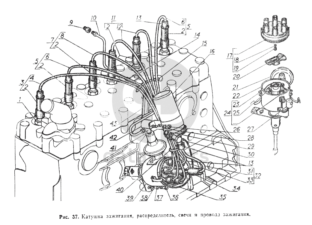 Катушка зажигания, распределитель, свечи и провода зажигания ГАЗ-52-02