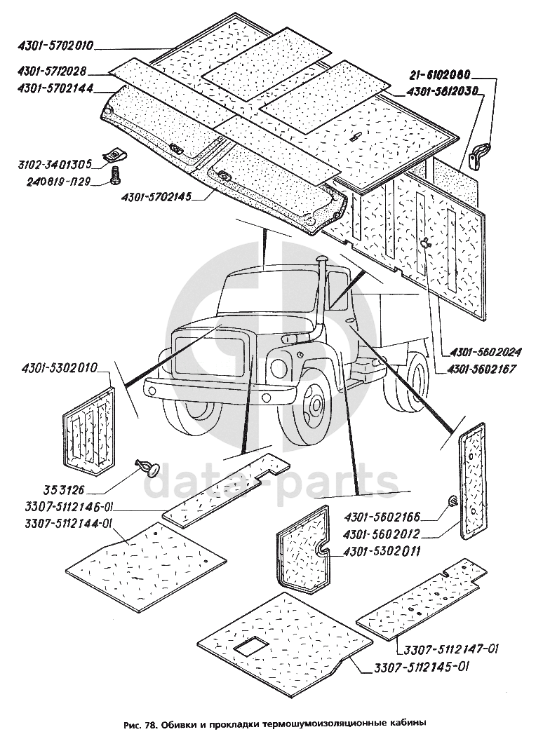 Обивки и прокладки термошумоизоляционные кабины ГАЗ-3306