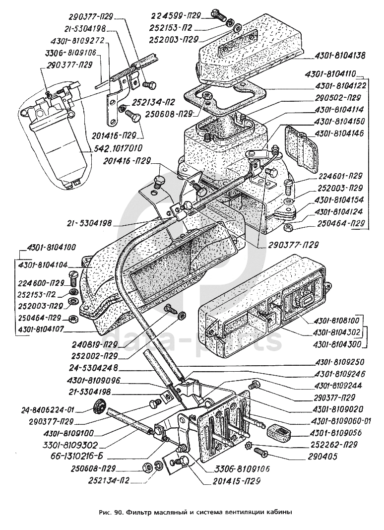 Фильтр масляный и система вентиляции кабины ГАЗ-3306