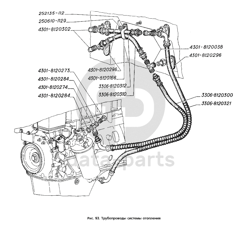 Трубопроводы системы отопления ГАЗ-3306