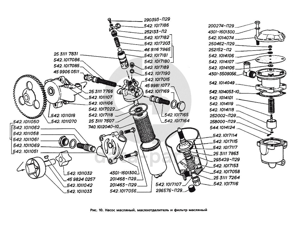 Насос масляный, маслоотделитель и фильтр масляный ГАЗ-3306