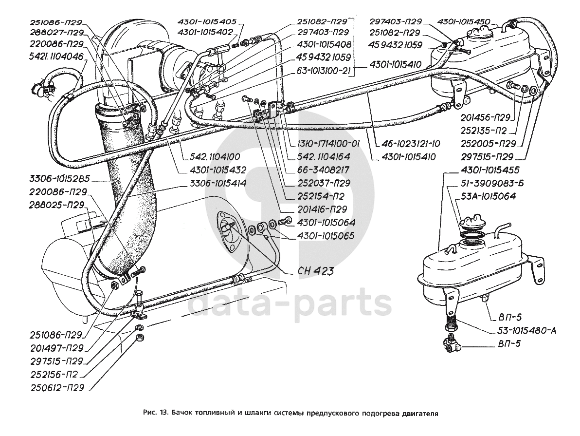 Бачок топливный и шланги системы предпускового подогрева двигателя ГАЗ-3306