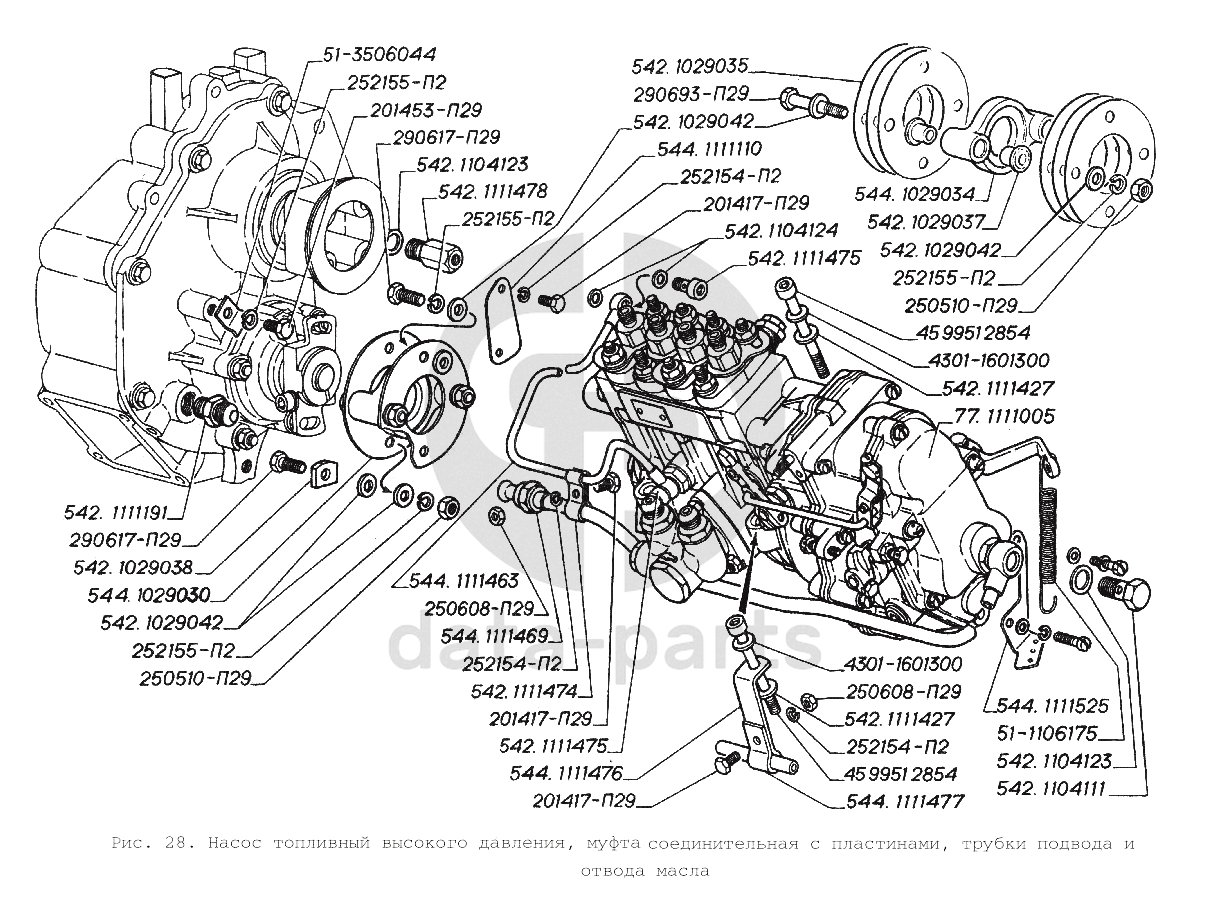 Насос топливный высокого давления, муфта соединительная с пластинами, трубки подвода и отвода масла ГАЗ-3306