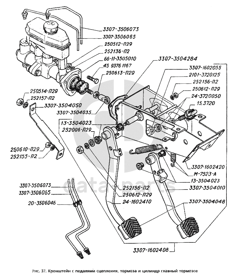 Кронштейн с педалями сцепления, тормоза и цилиндр главный тормозов ГАЗ-3306