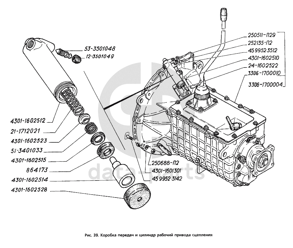 Коробка передач и цилиндр рабочий привода сцепления ГАЗ-3306