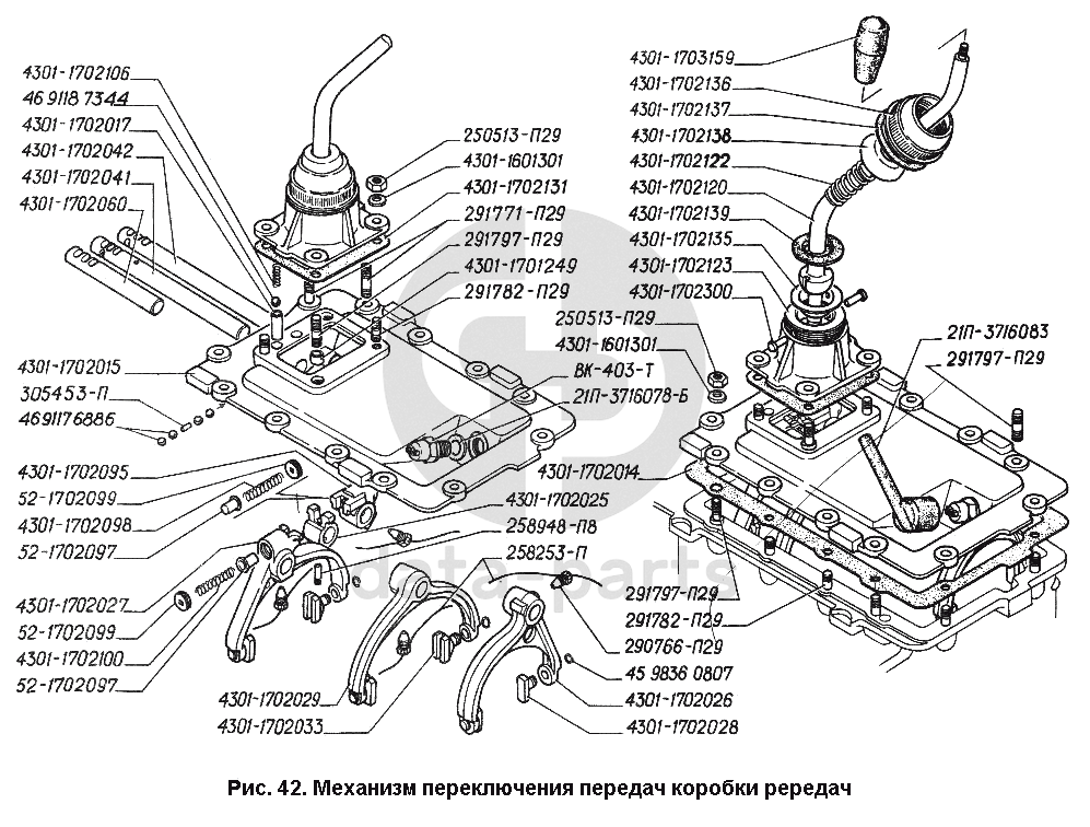 Сухарь вилки переключения второй, третьей, четвертой и пятой передач