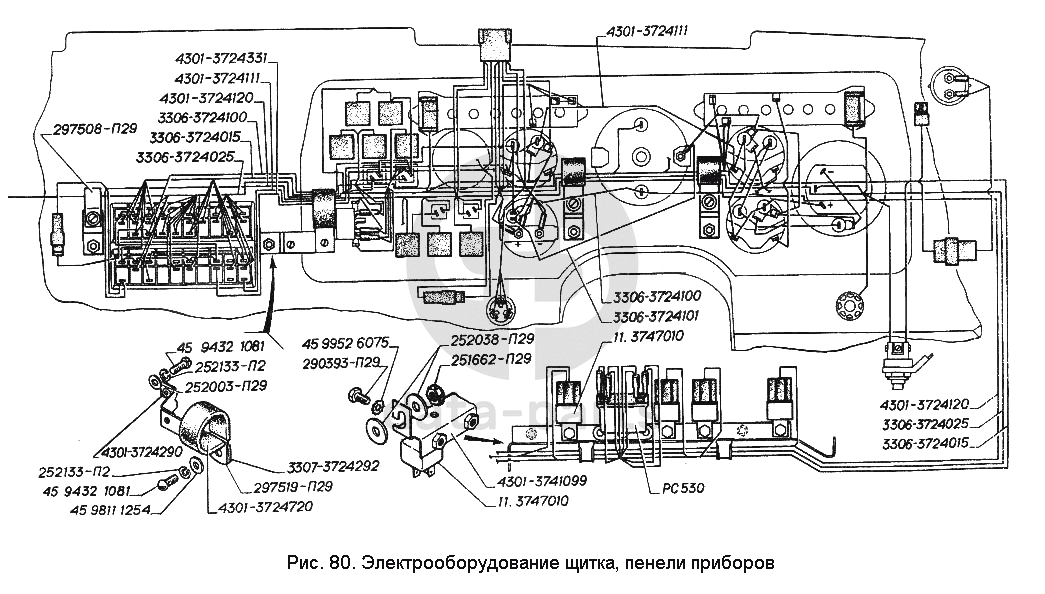 Электрооборудование щитка, панели приборов ГАЗ-3306
