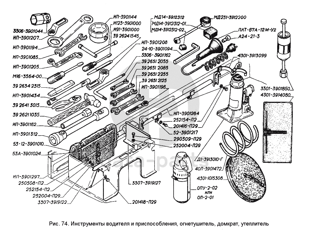 Инструмент водителя и приспособления, огнетушитель, домкрат, утеплитель ГАЗ-3306