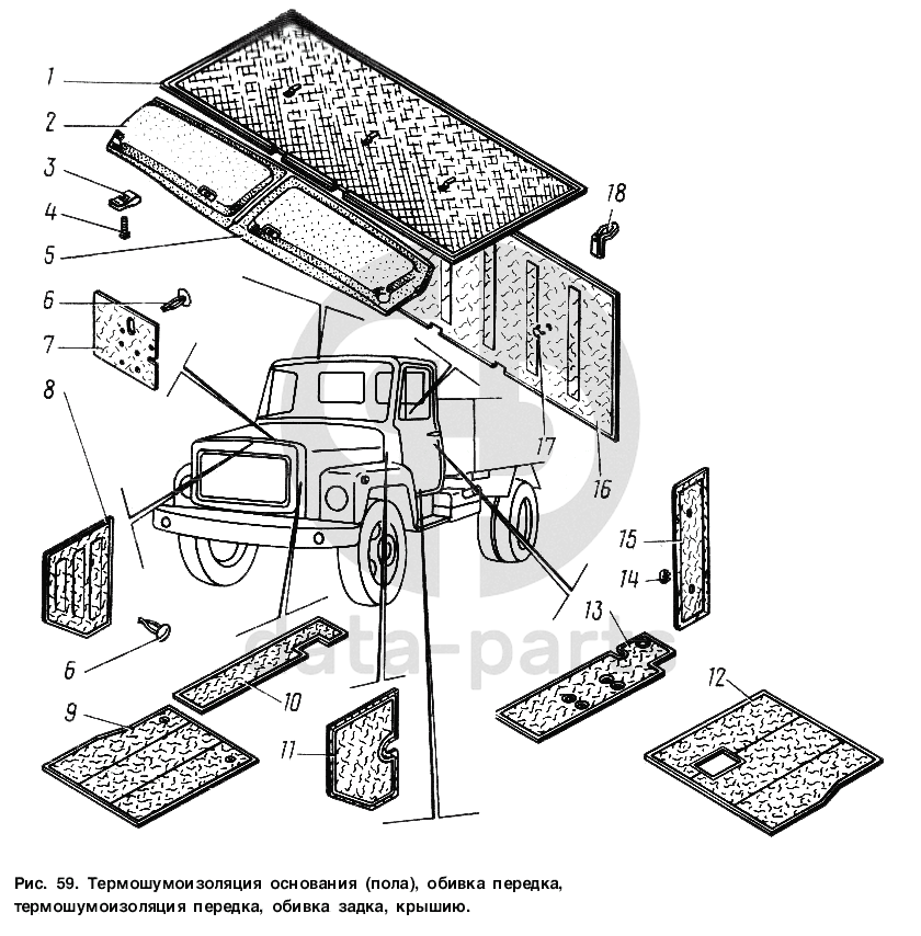 Термошумоизоляция основания пола, обивка передка, термошумоизоляция передка, обивка задка ГАЗ-3307