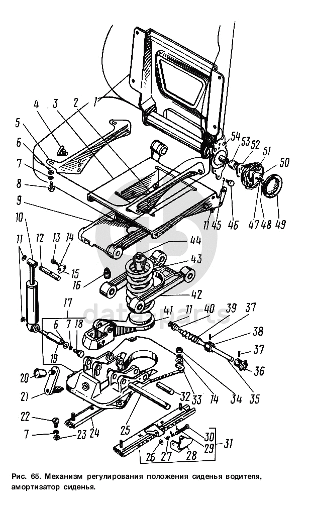 Механизм регулирования положения сиденья водителя, амортизатор сиденья ГАЗ-3307