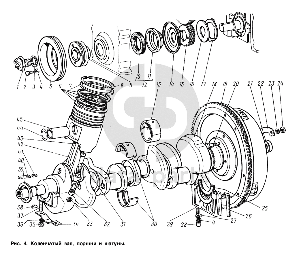 Коленчатый вал, поршни и шатуны ГАЗ-3307