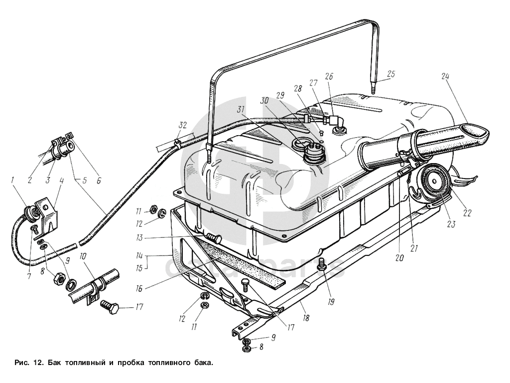 Бак топливный и пробка топливного бака ГАЗ-3307