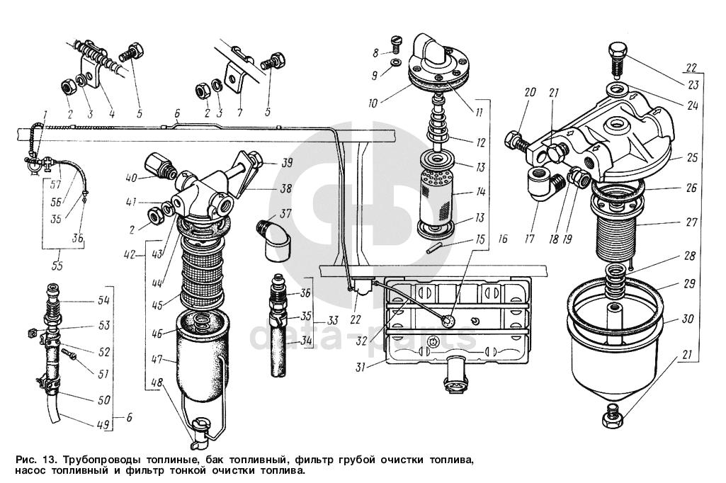 Трубопроводы топливные, бак топливный, фильтр грубой очистки топлива, насос топливный и фильтр тонкой очистки топлива ГАЗ-3307