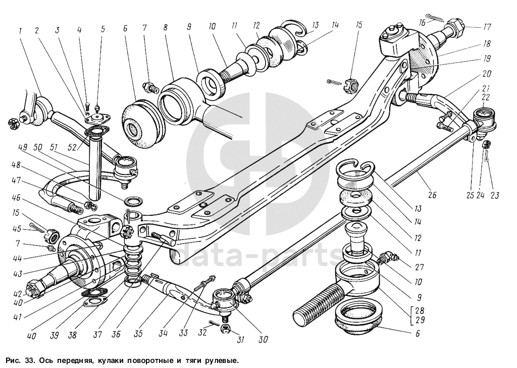 Ось передняя, кулаки поворотные и тяги рулевые ГАЗ-3307
