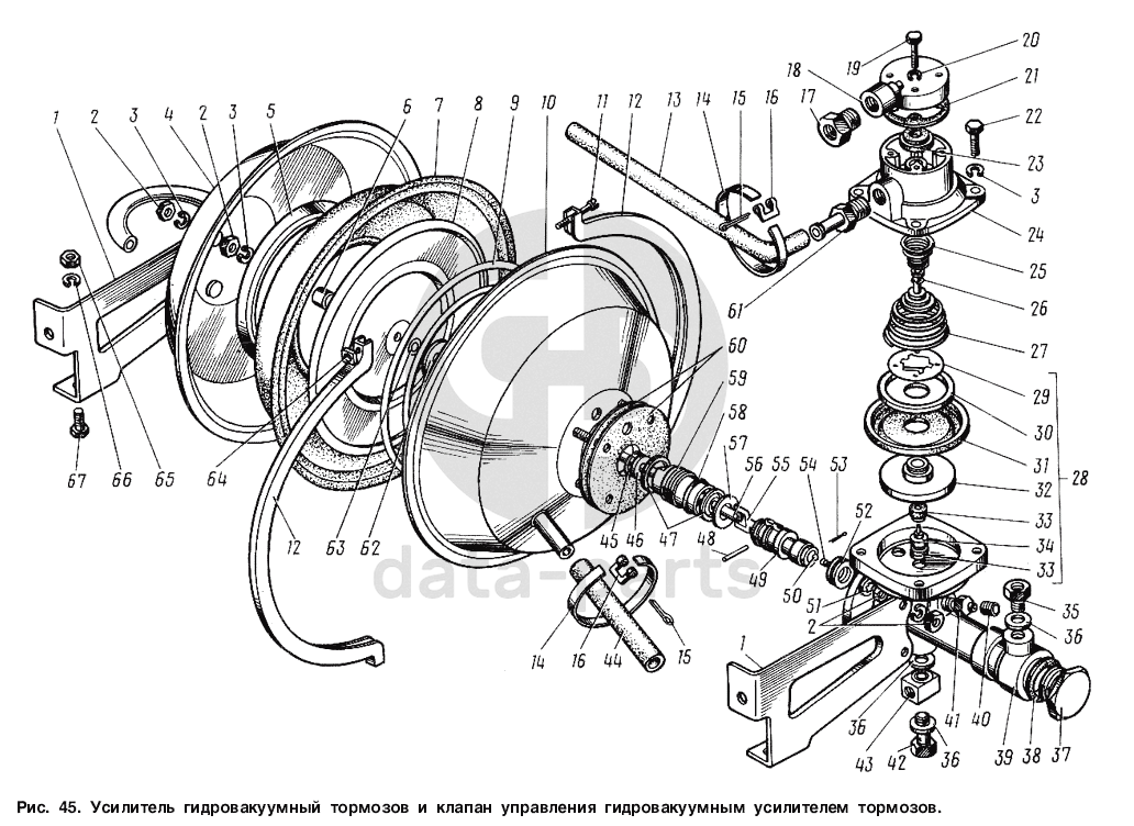 Усилитель гидровакуумный тормозов и клапан управления гидровакуумным усилителем тормозов ГАЗ-3307