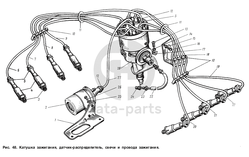 Катушка зажигания, датчик-распределитель, свечи и провода зажигания ГАЗ-3307