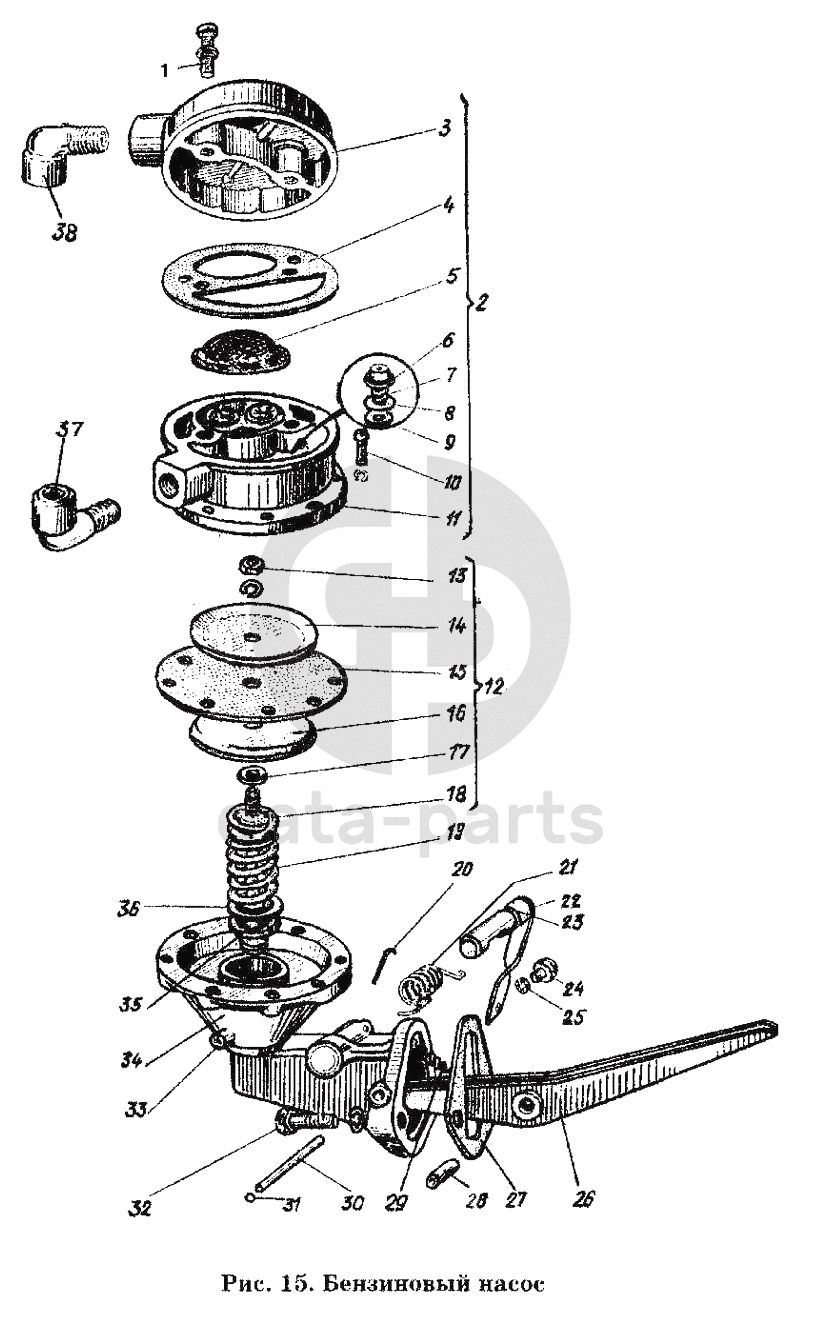 Валик ручного привода бензинового насоса с рычагом в сборе