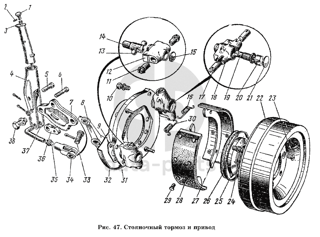 Ограничитель хода корпуса шариков разжимного механизма центрального тормоза