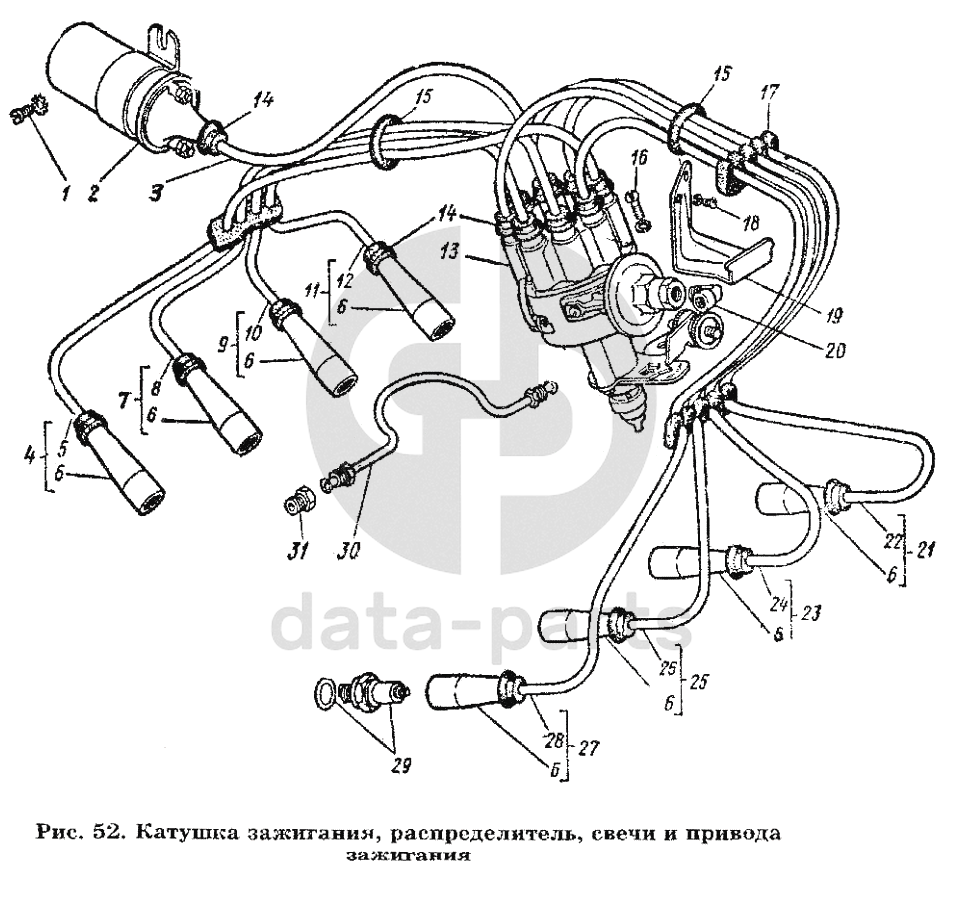 Катушка зажигания, распределитель, свечи привода зажигания ГАЗ-53 А