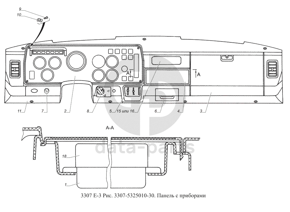 3307-5325010-30. Панель с приборами ГАЗ-3307 (доп. с дв. ЗМЗ Е 3)