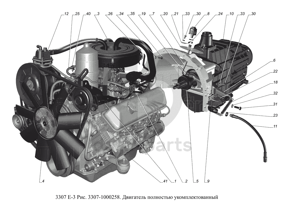 3307-1000258. Двигатель полностью укомплектованный ГАЗ-3307 (доп. с дв. ЗМЗ Е 3)