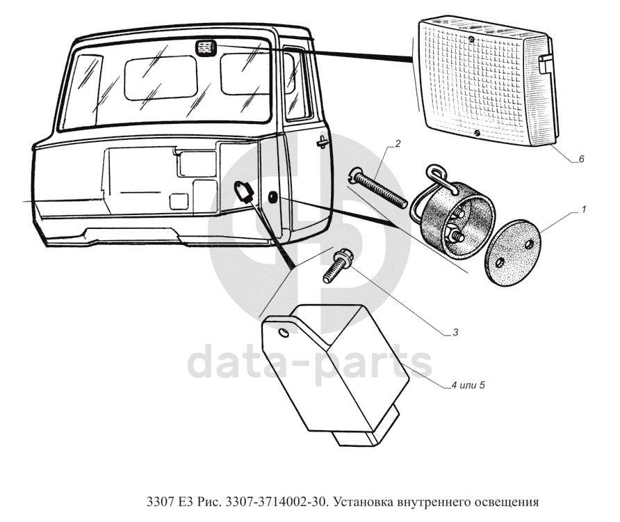 3307-3714002-30.Установка внутреннего освещения ГАЗ-3307 (доп. с дв. ЗМЗ Е 3)