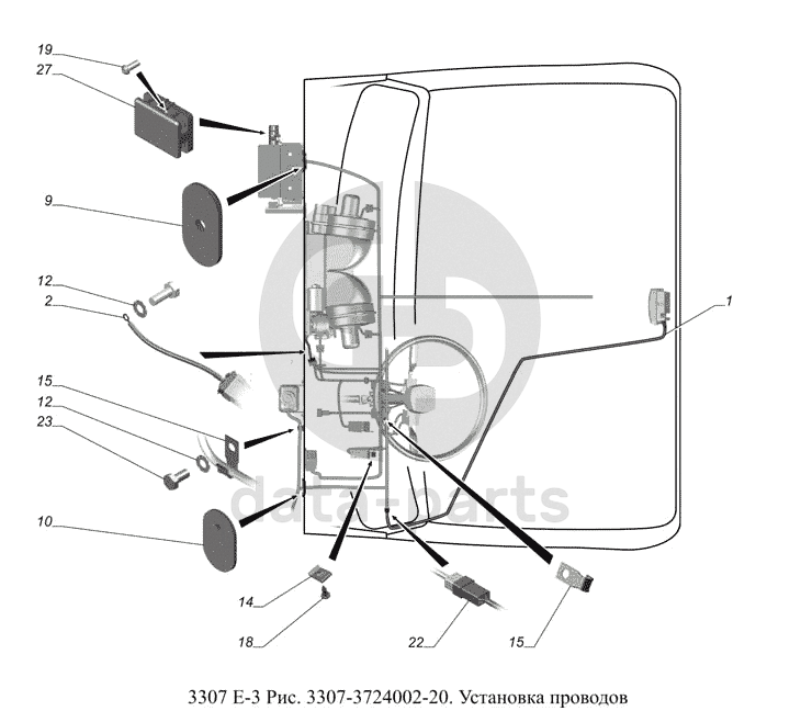 3307-3724002-20. Установка проводов ГАЗ-3307 (доп. с дв. ЗМЗ Е 3)