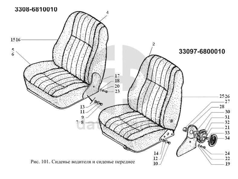 Сиденье водителя и сиденье переднее ГАЗ-3308