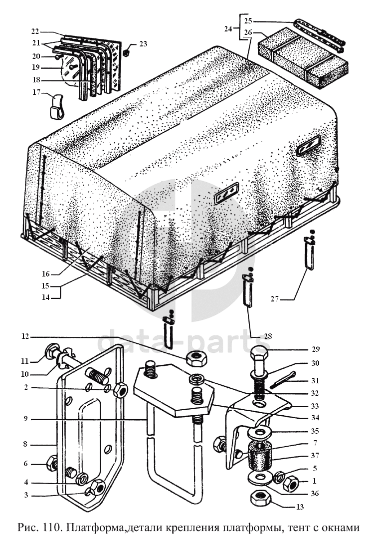 Платформа, детали крепления платформы, тент с окнами ГАЗ-3308