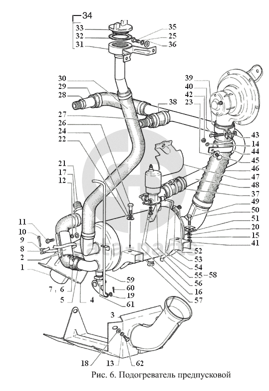 Хомут крепления воздухоподводящего патрубка подогревателя