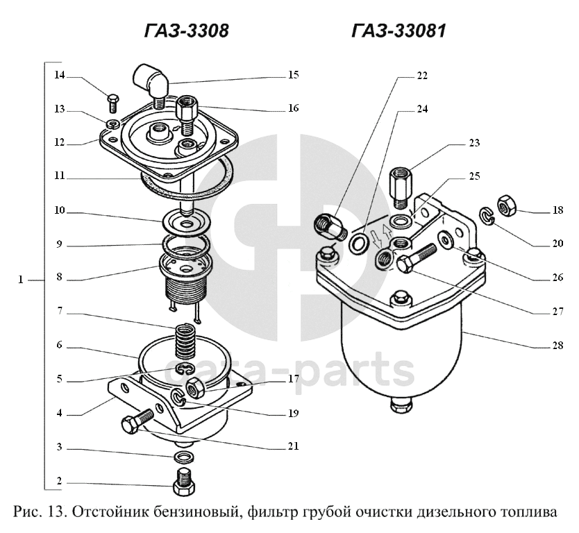 Отстойник бензиновый, фильтр грубой очистки дизельного топлива ГАЗ-3308