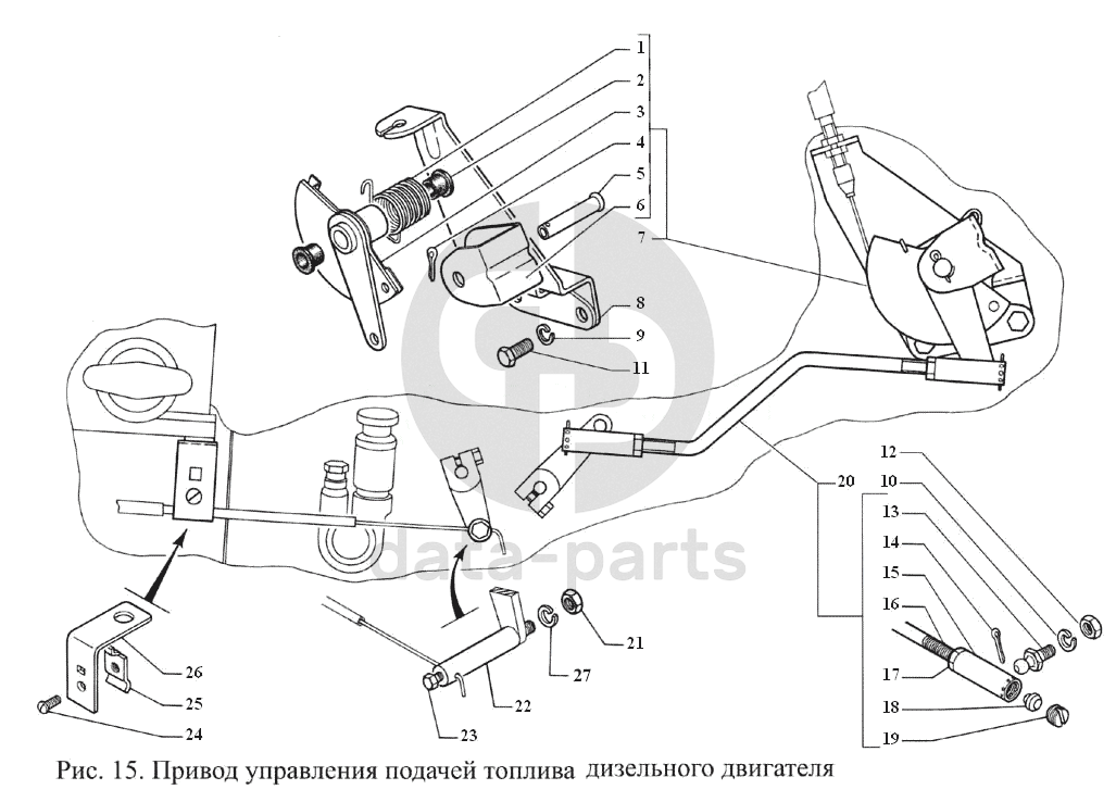 Привод управления подачей топлива дизельного двигателя ГАЗ-3308