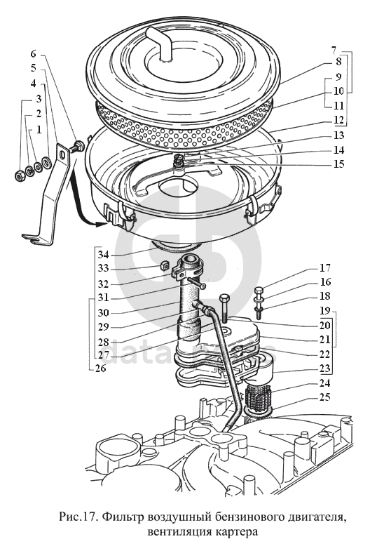 Фильтр воздушный бензинового двигателя, вентиляция картера ГАЗ-3308
