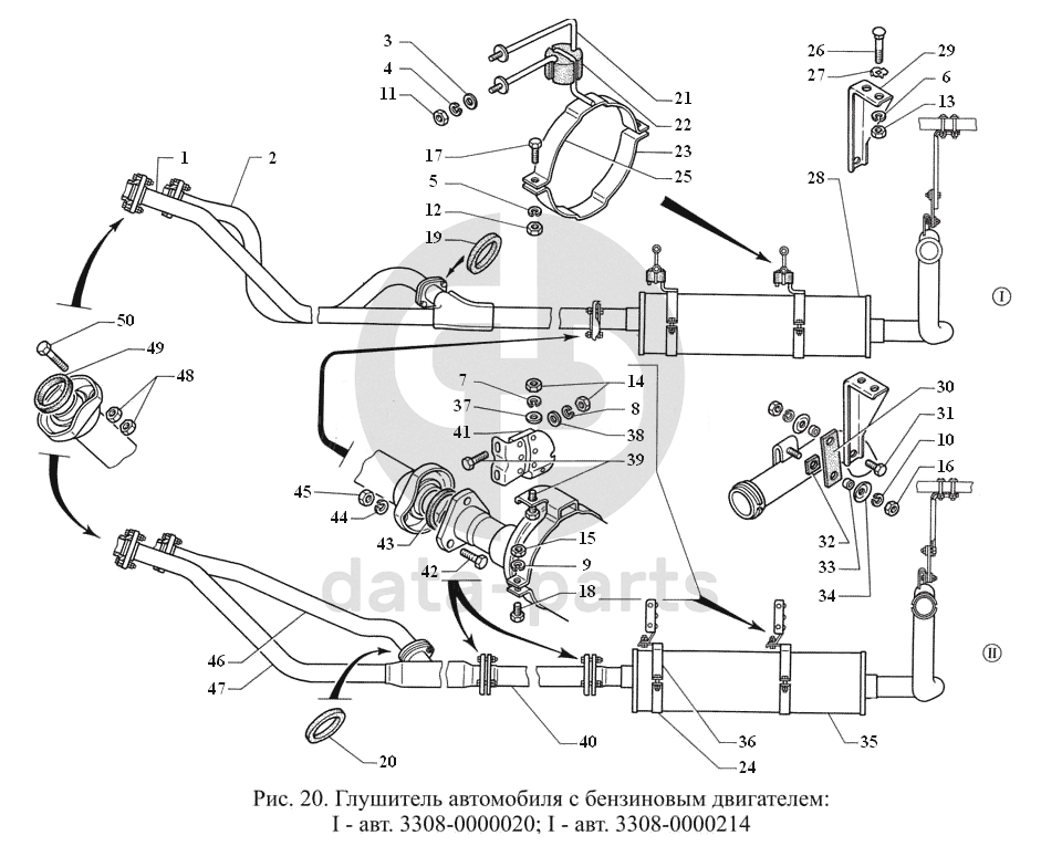 Глушитель автомобиля с бензиновым двигателем ГАЗ-3308