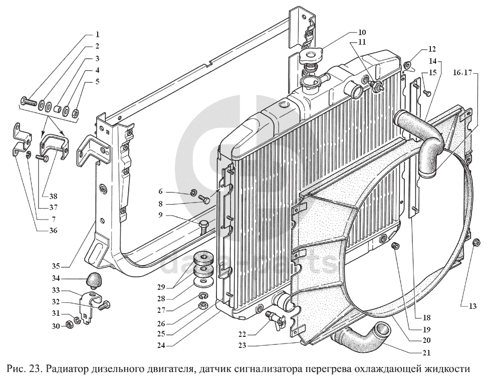 Радиатор дизельного двигателя, датчик сигнализатора перегрева охлаждающей жидкости ГАЗ-3308