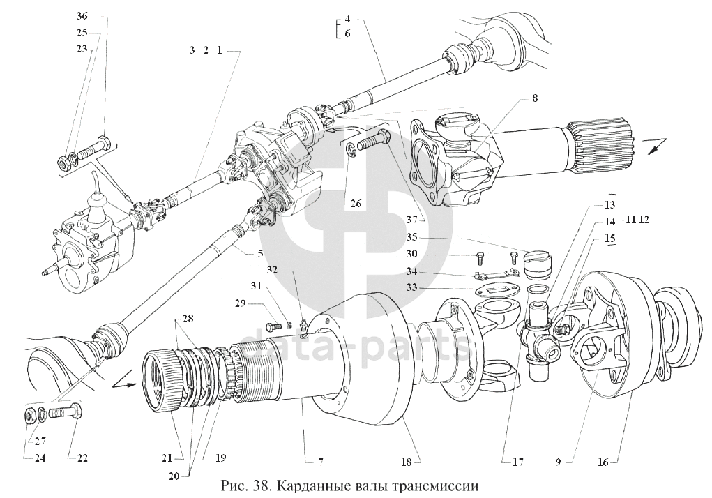 Карданные валы трансмиссии ГАЗ-3308