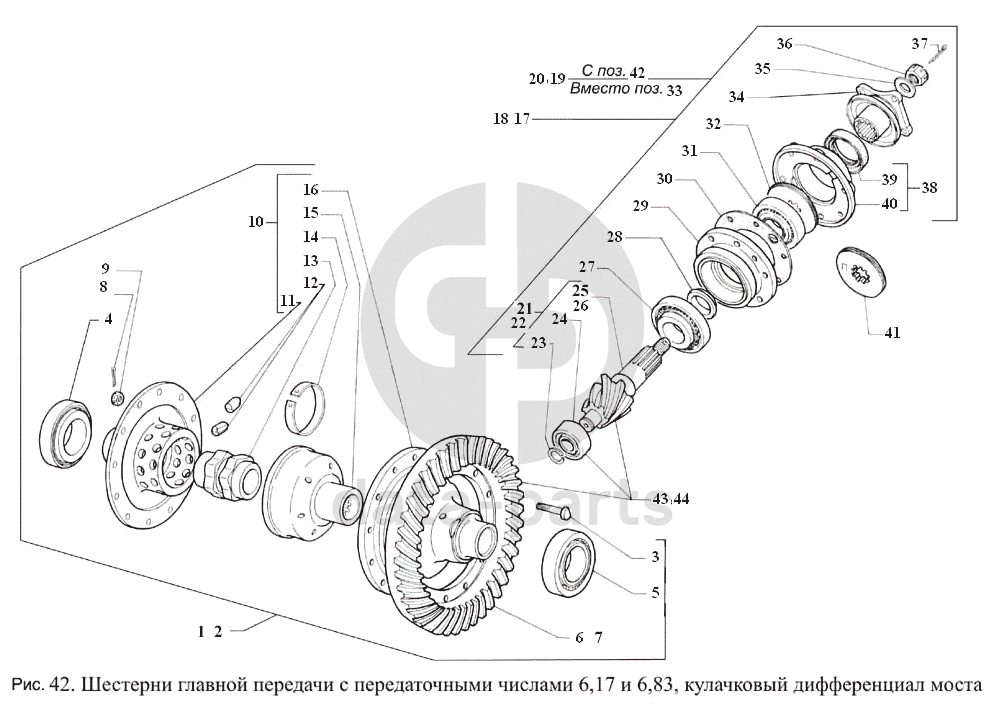 Шестерни главной передачи с передаточными числами 6,17 и 6,83, кулачковый дифференциал моста ГАЗ-3308