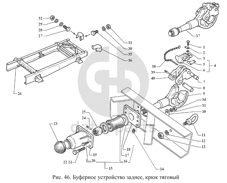 Буферное устройство заднее, крюк тяговый ГАЗ-3308