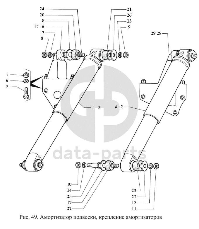 Амортизатор подвески, крепление амортизаторов ГАЗ-3308