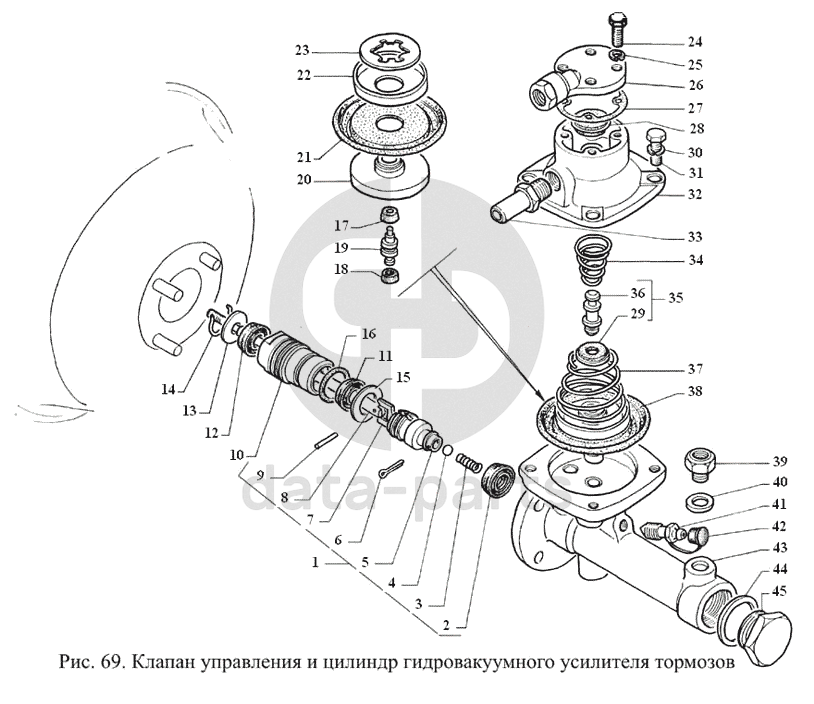 Клапан управления и цилиндр гидровакуумного усилителя тормозов ГАЗ-3308