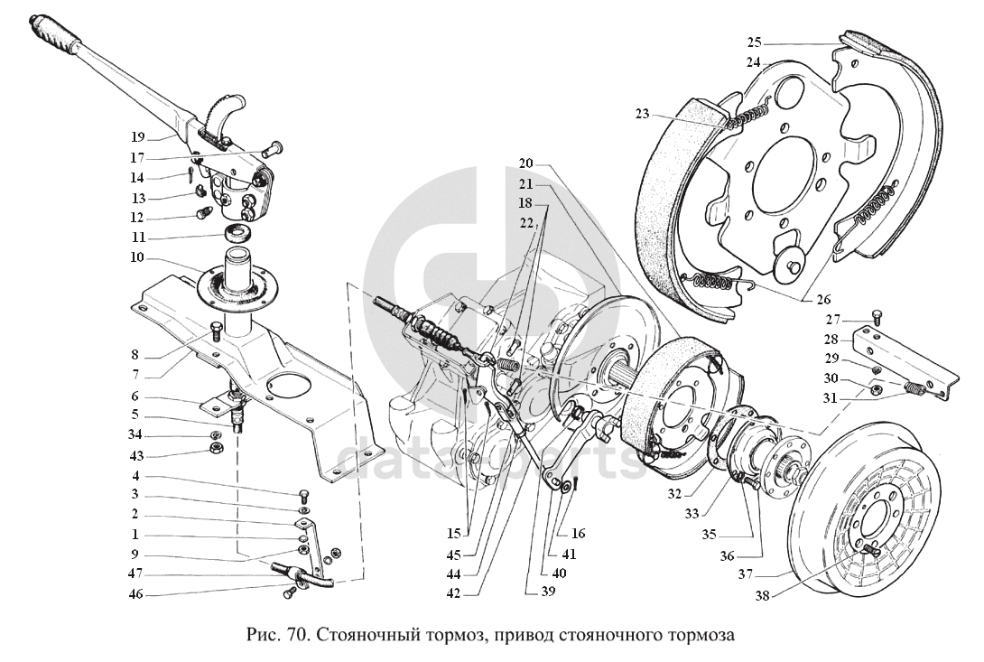 Стояночный тормоз, привод стояночного тормоза ГАЗ-3308