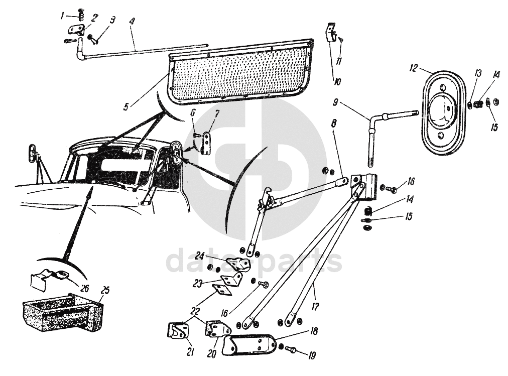 Кронштейн оси зеркала заднего вида со стойками левый в сборе