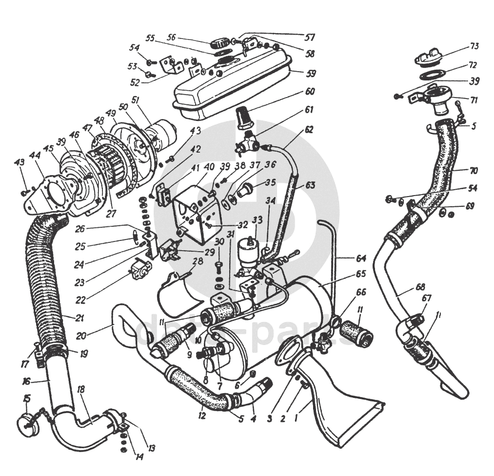 Экран нижнего шланга подводящей трубы пускового подогревателя