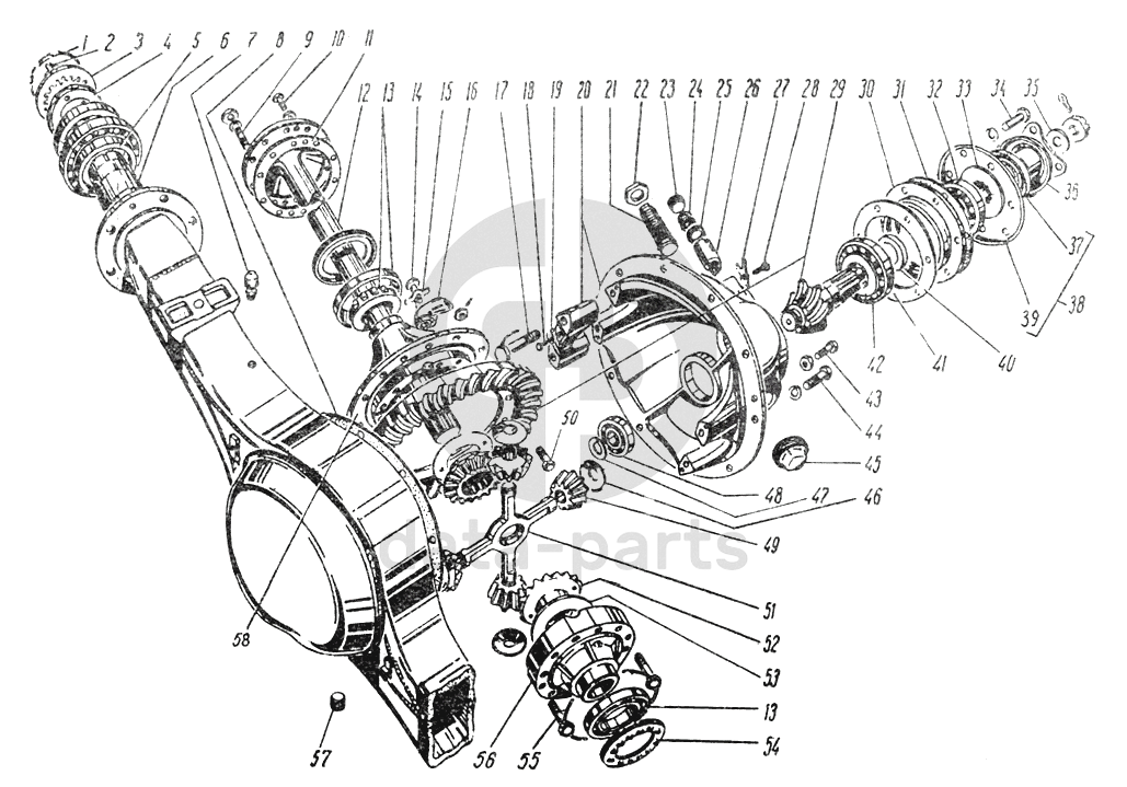 Картер редуктора заднего моста с крышками подшипников в сборе