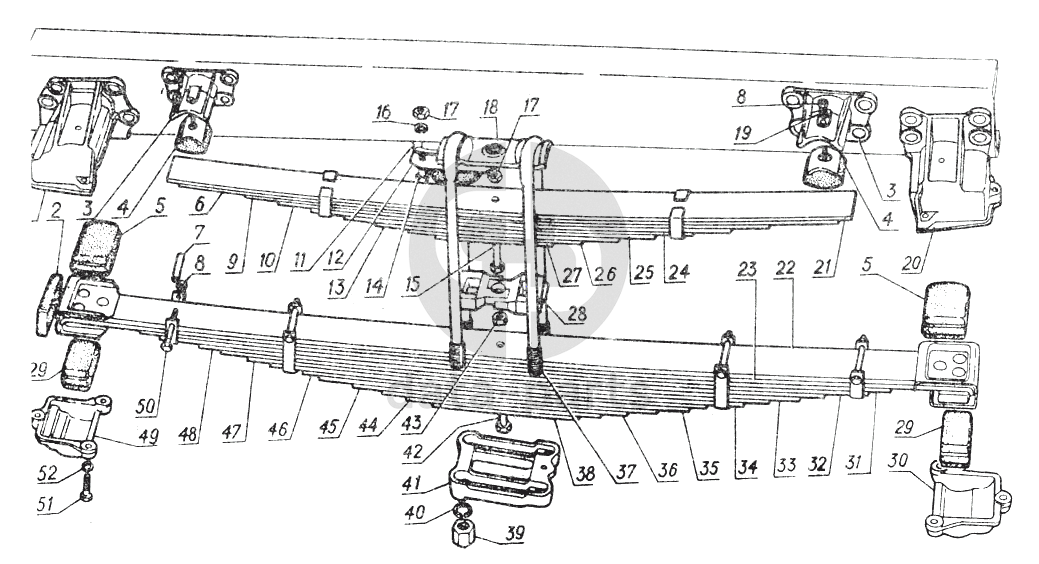 Лист № 5 дополнительной рессоры с хомутами в сборе
