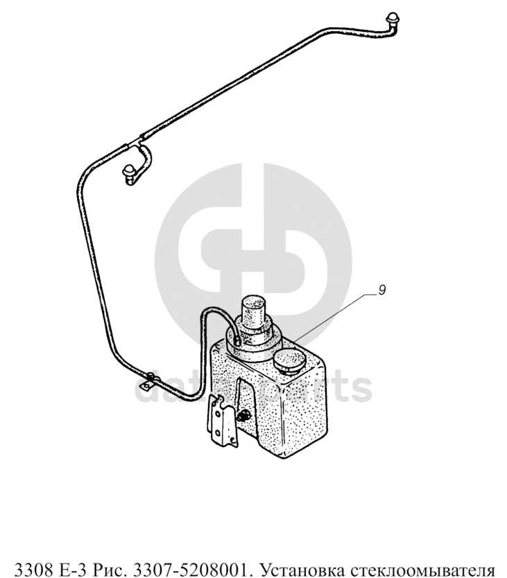 3307-5208001. Установка стеклоомывателя ГАЗ-3308 (доп. с дв. ЗМЗ Е 3)