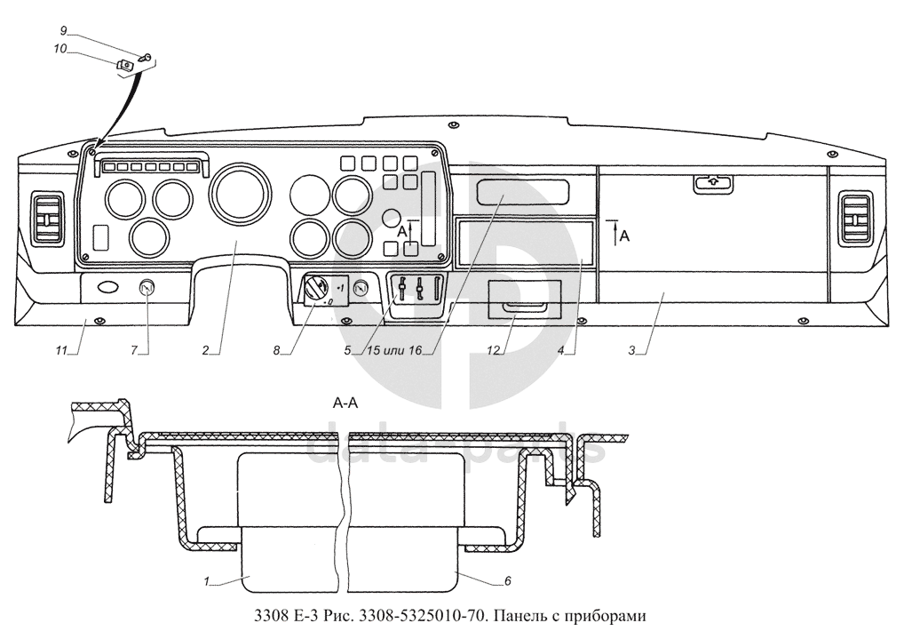 3308-5325010-70. Панель с приборами ГАЗ-3308 (доп. с дв. ЗМЗ Е 3)