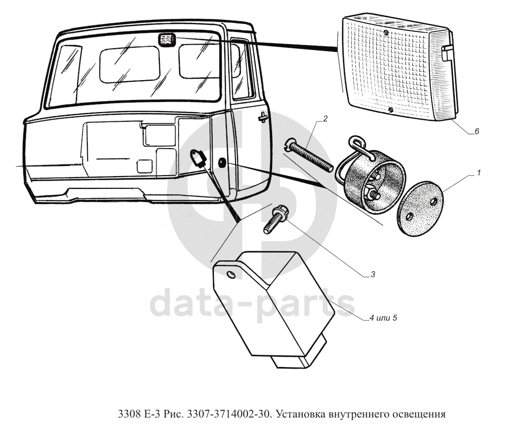 3307-3714002-30. Установка внутреннего освещения ГАЗ-3308 (доп. с дв. ЗМЗ Е 3)