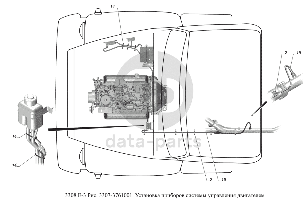 3307-3761001. Установка приборов системы управления двигателем ГАЗ-3308 (доп. с дв. ЗМЗ Е 3)